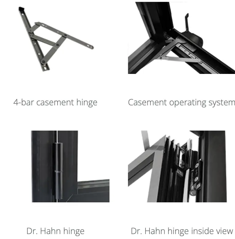 Hinged Casements feature high-quality, strong aluminum hinges manufactured in Germany by Dr. Hahn, exclusively distributed by ASSA ABLOY.